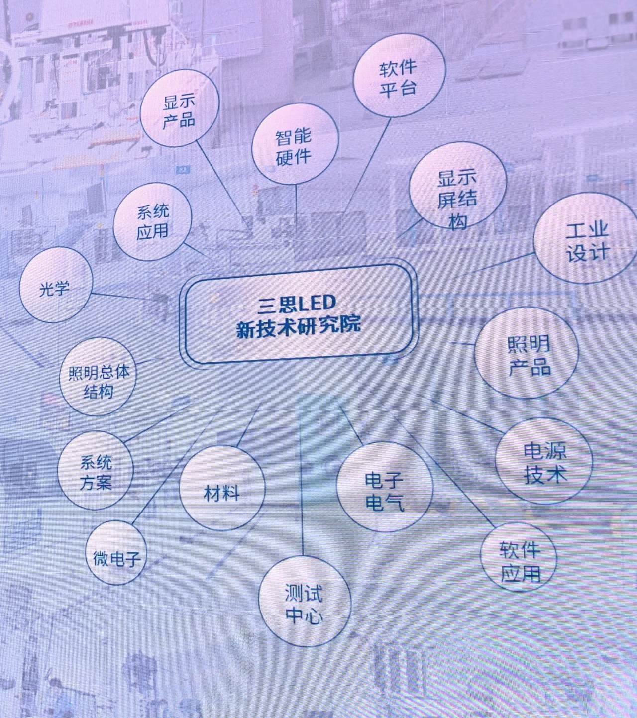 三思有自己的研究院,即LED創新技術研究院,還有著16個研究所。“一院十六所”涵蓋計算機軟件、電子通信、自動控制、光電顯示與照明、機械結構、系統集成等多學科領域,而且每個研究所都形成了一個完備的科研梯隊。目前,三思科研團隊人數超500人,每年研發經費投入高達總銷售額的8%之多,擁有著880多項授權專利技術,參與100多項國家和行業標準制定。
