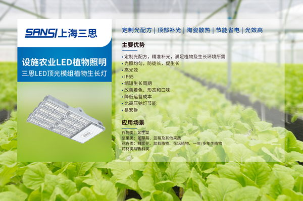傳統的人工植物補光光源有熒光燈、高壓鈉燈、金屬鹵化物燈等,這些光源大多光效低、電能消耗大,而LED植物生長燈光效高、節能環保、壽命長,是植物照明理想的選擇之一。與市面上其他LED植物照明產品不同的是,三思系列植物補光產品采用了眾多創新技術,為農戶增產增收提供有力保障。