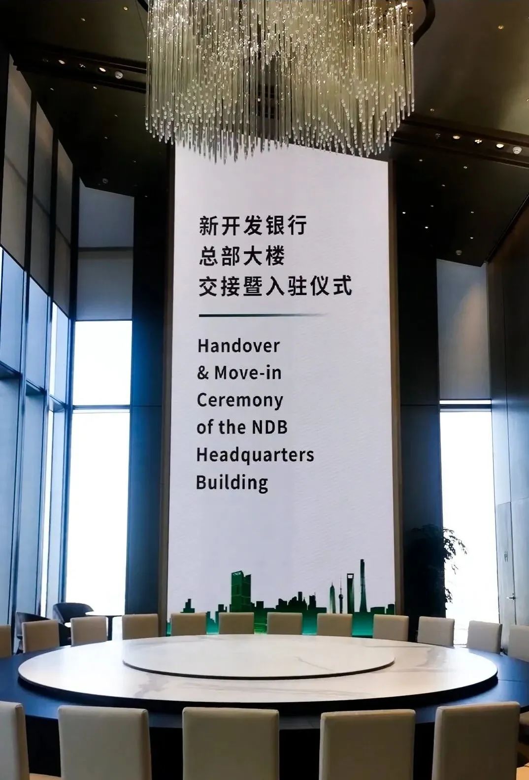 金磚銀行總部大樓總建筑面積12.6萬平方米,于2021年9月投入使用,能滿足約2500人的辦公需求。整棟建筑的建造體現以人為本、綠色生態和新開發銀行“創新、平等、透明、可持續發展”的價值理念,建筑主體形象突出、識別度高,已成為黃浦江沿岸又一地標性建筑。