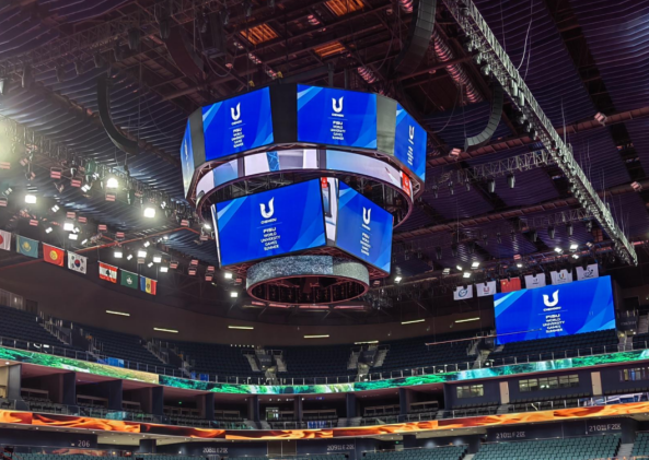 2023.7.29-8.5,第31屆世界大學生夏季運動會乒乓球比賽將在成都高新區體育中心多功能體育館正式打響!上海三思以優質的顯示屏產品和強大的定制服務能力,為場館提供了可升降斗型屏,及端屏、看臺環屏等產品和系統,顯示總面積近900㎡,為精彩賽事增光添彩。