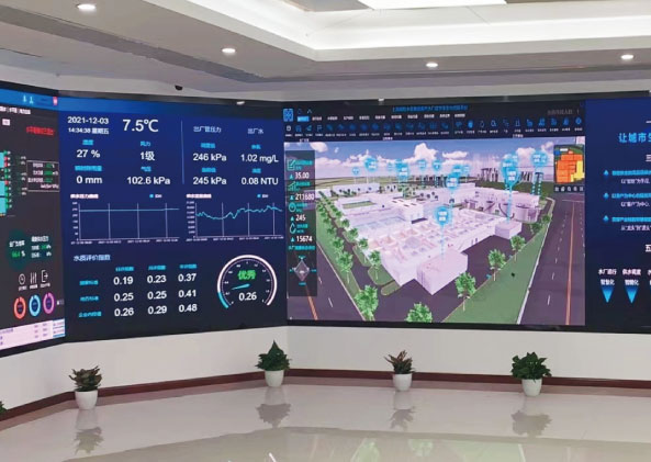上海南市水廠率先建設了上海市的“數字水廠”,而該水廠的數字孿生水廠系統通過上海三思為其定制的智慧LED可視化大屏加以呈現。大屏能夠實時展示生產業務數據、水質監測數據、物聯感知數據等關鍵數據,動態展現水質變化情況,通過降低設備故障率、提升管控精準度等方式提高水質的穩定性、市民用水體驗、水廠能源的供水壓力穩定性及碳減排優勢。三思智慧LED可視化大屏還能夠呈現各類業務場景,助力管理者實現更加精確的決策。