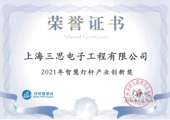 2021年中國國際信息通信展暨5G+智慧燈桿融合發展論壇在北京國際會議中心隆重召開!邀請了智慧燈桿產業相關領域的知名專家、頭部企業、政府及各地相關單位領導,并與行業知名專家共同就智慧燈桿建設運營、跨界融合、模式創新等問題進行深度探討。第三屆智慧燈桿產業大獎”2021年智慧燈桿產業創新獎”該獎項是對深耕智慧路燈行業多年企業的肯定和鼓舞,也是對我司在智慧燈桿產業中起到的創新帶頭作用的褒獎。