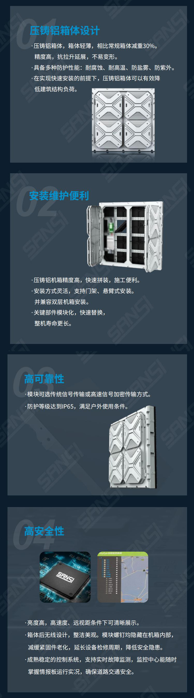 高速公路鑄鋁機(jī)箱(1m*1m)是一款標(biāo)準(zhǔn)化尺寸的室外壓鑄鋁機(jī)箱,鋁壓鑄件具有重量輕、強(qiáng)度高、耐用性好、可塑性強(qiáng)、成型精度高等優(yōu)點(diǎn),可滿足生產(chǎn)安裝高速公路可變信息標(biāo)志的不同形狀和尺寸的需求。