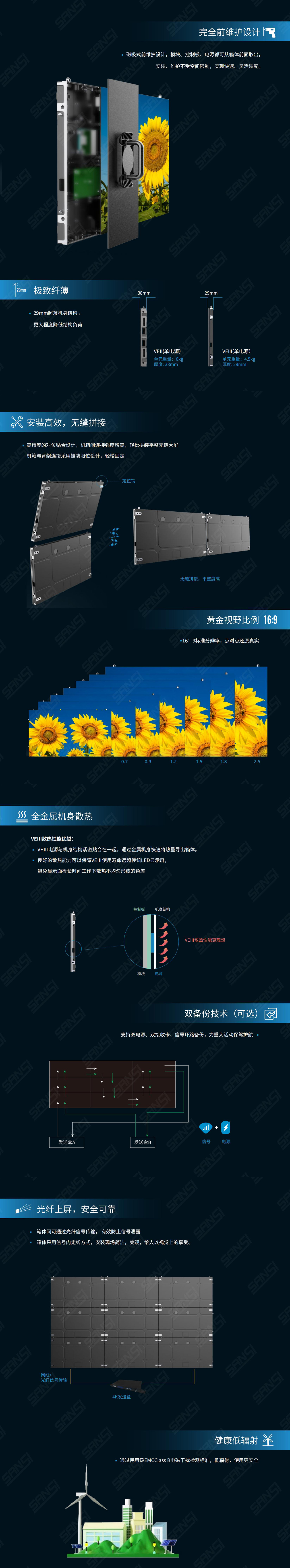 VEⅢ系列是三思專門針對中高端室內專業顯示市場,尤其是適用對安裝空間有高要求的應用場所,而研發的一款高品質、前安裝、前維護小間距LED顯示屏。
