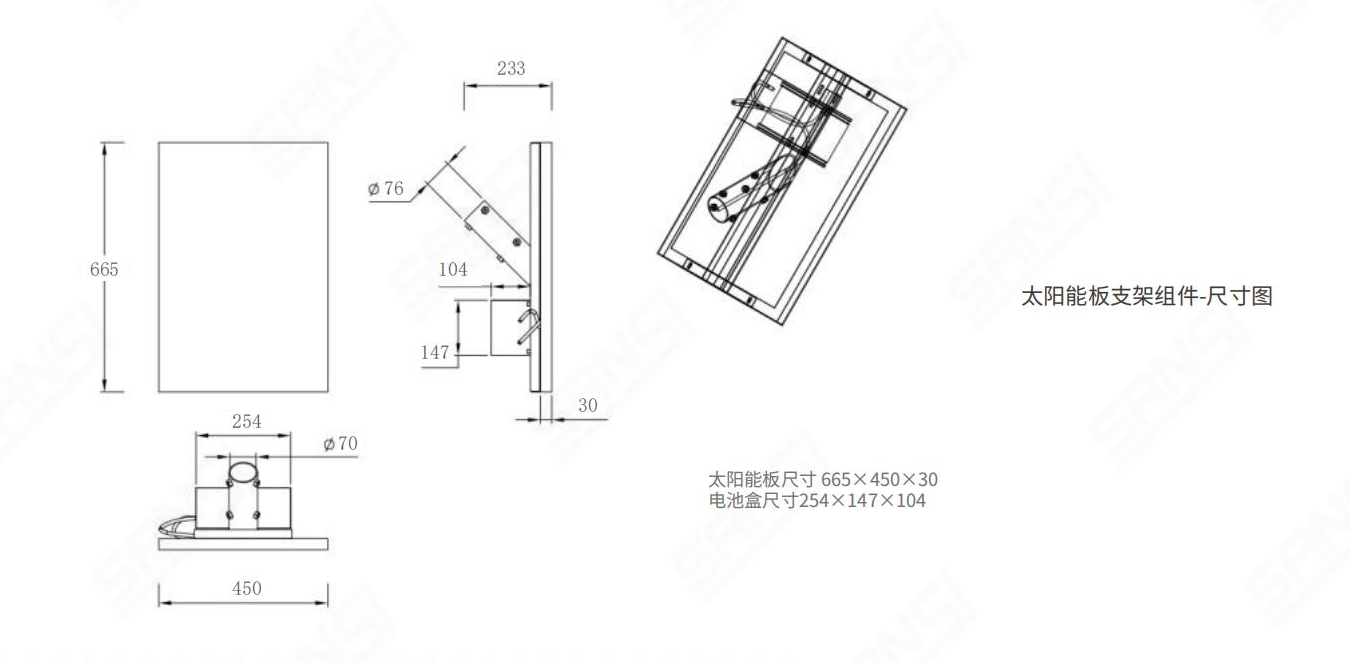 C0830-TR太陽能路燈憑借高光效、低光衰等優越性能被廣泛應用于道路照明領域,產品采用多晶硅組件, 轉換效率高達18%,進口PC材料透鏡透光率高,廣泛應用于各種類型的鄉村道路、步行道、工業園區道路等。